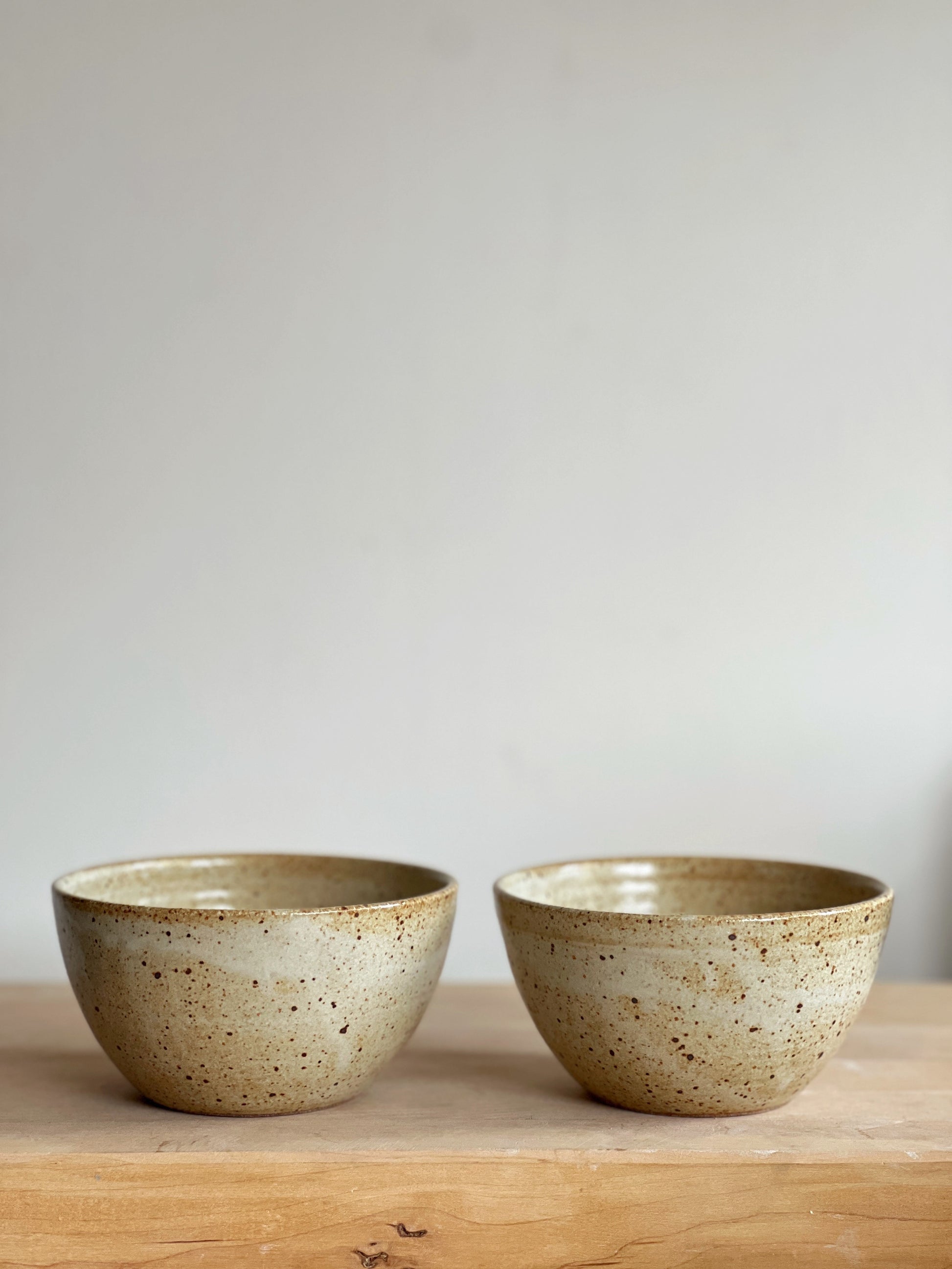 Breakfast bowl in toasty speckly cream glaze. A versatile size and shape suitable for cereal, yogurt, salad and soup.