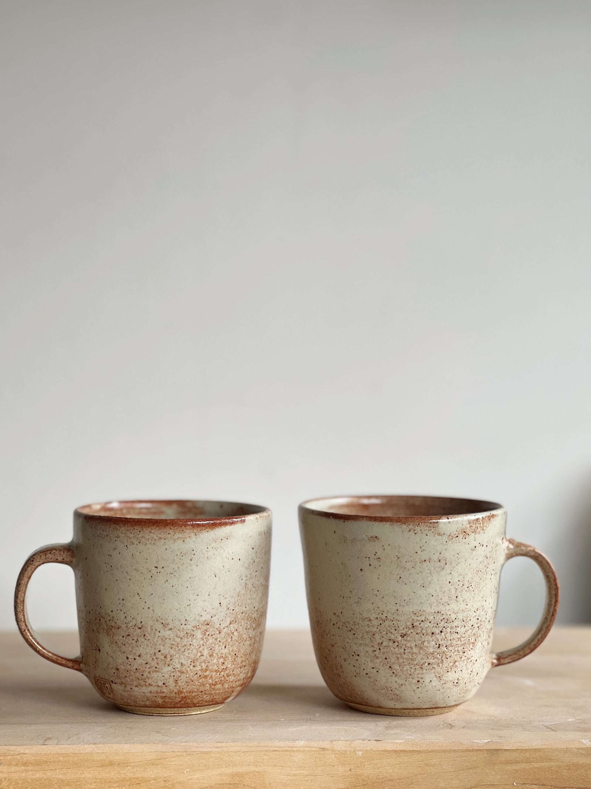 Mug in matte, milky rust glaze. The partial rust color adds richness to the finish and makes each piece uniquely different.