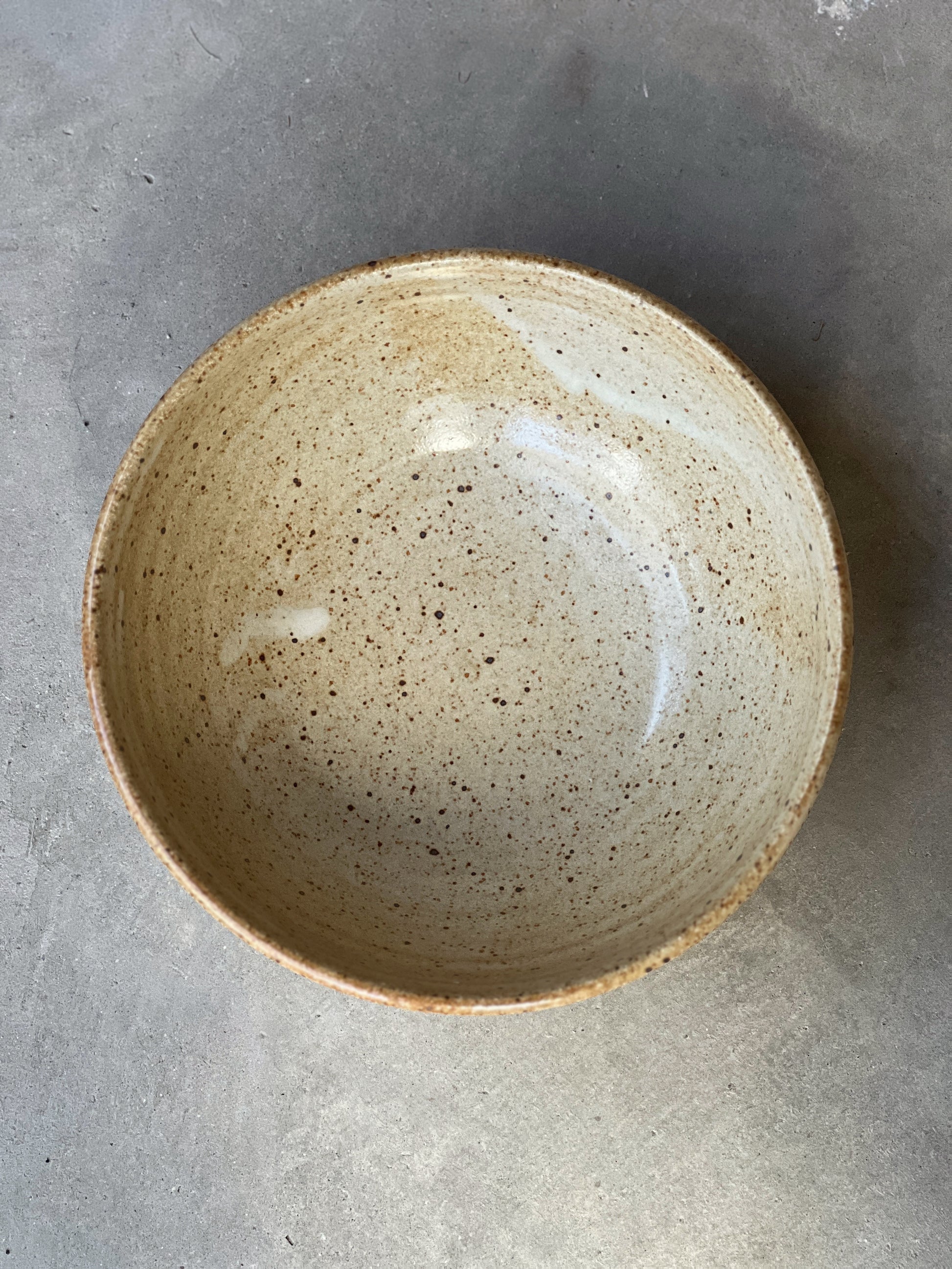 Serving bowl in toasty, creamy, speckled finish. Perfect for salads.